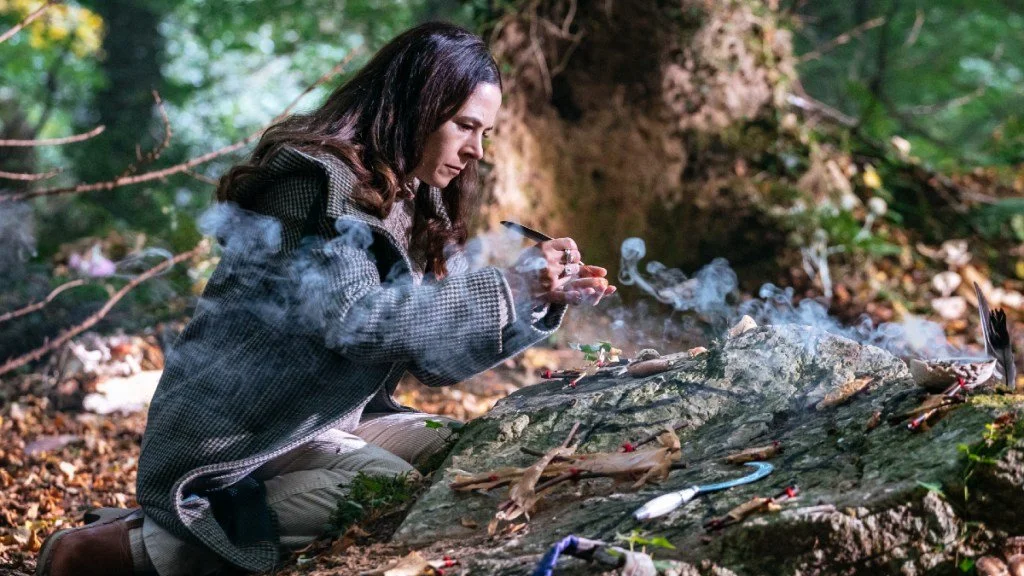 The series kicks off with the sudden death of Dan Whithall, the town’s beloved rugby golden boy. In the aftermath, grief needs a target, and Elaine Cassidy’s Sarah Fenn, a modern-day witch living quietly on the margins, becomes the obvious one. Cassidy gives Sarah a grounded, weary humanity that keeps the character from drifting into mystical archetype territory. She is not spooky for show. She is simply existing, and that ends up being enough to make her dangerous in the eyes of a community desperate for answers.