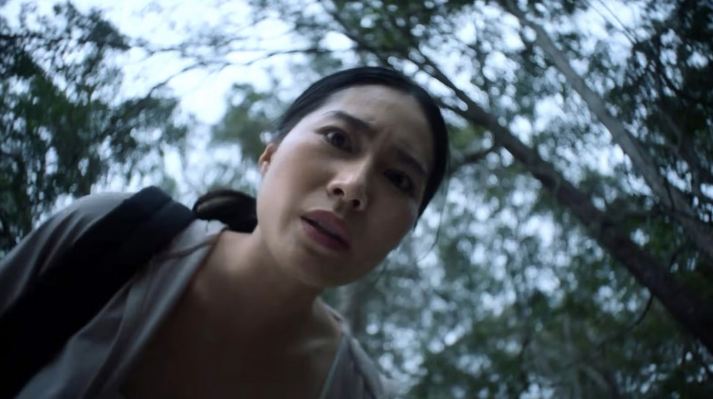 The score is used perfectly, amplifying tension without ever overpowering the image, and the sound design as a whole is rock solid. Whispers float through the trees, footsteps echo just out of sight, and the forest itself feels alive in a hostile, watchful way. There are some genuinely excellent jump scares here too, sharp and well-timed, not the lazy kind that rely solely on loud noise.